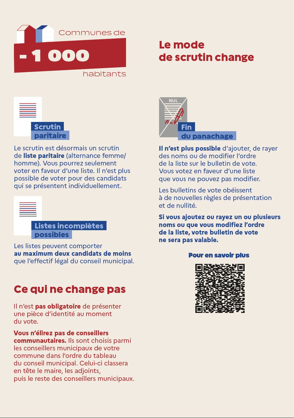 En prévision des élections municipales des 15 et 22 mars 2026, le ministère de l’Intérieur et l’AMF viennent de publier une brochure pédagogique permettant de comprendre, en un coup d’œil, la nouvelle méthode de vote qui s’appliquera dans les communes de moins de 1 000 habitants.