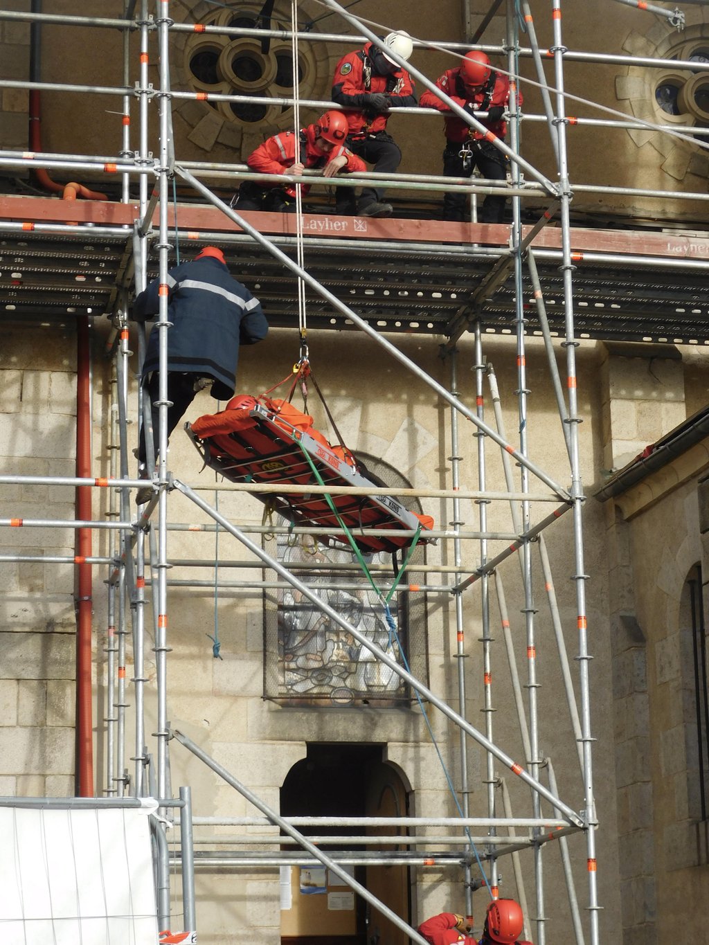 La prise en charge et l'évacuation d'un ouvrier sur ce type de chantier ont été le thème du jour.