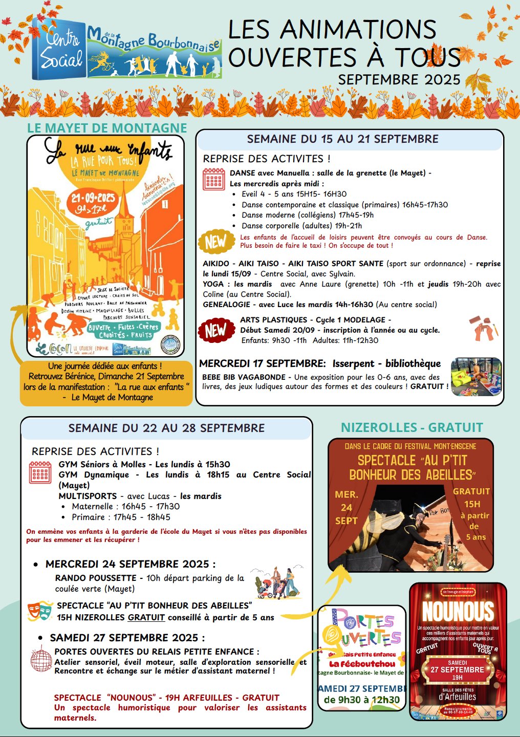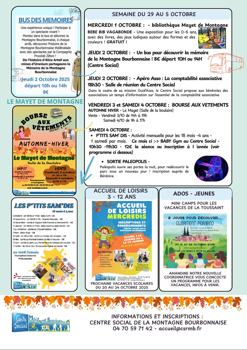 Afin de vous tenir informés, nous avons regroupé dans une info-lettre l’ensemble des activités et animations proposées par le Centre Social Rural pour la période de septembre à début octobre.