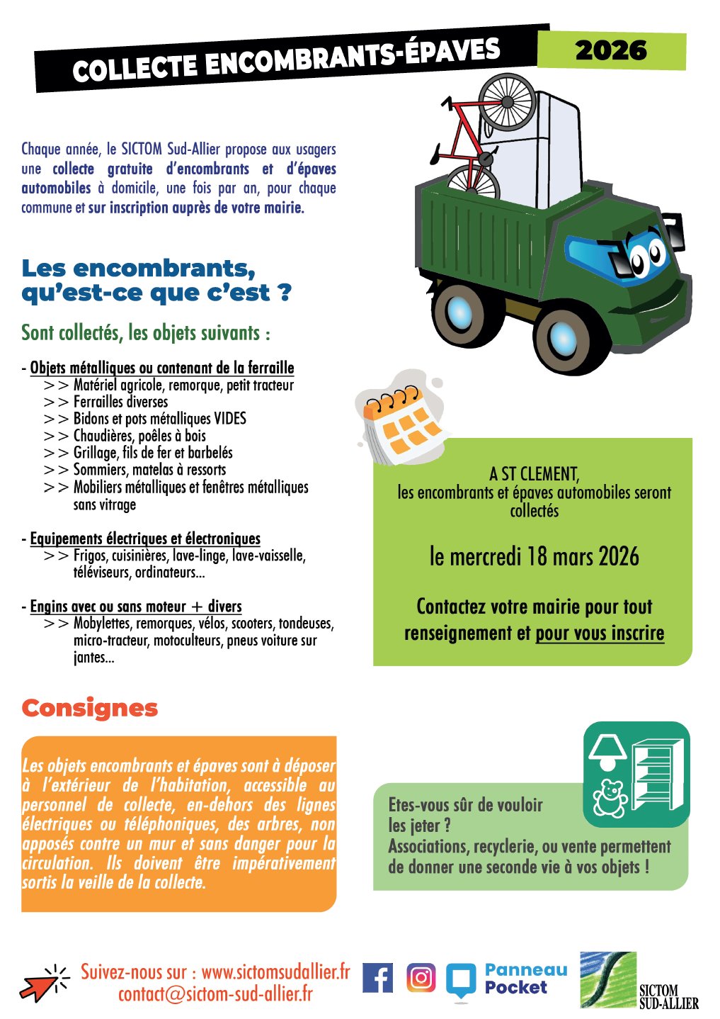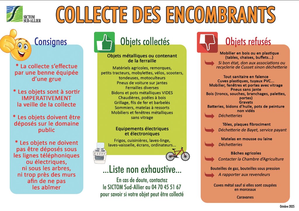 Information SICTOM Sud Allier pour la collecte des encombrants.